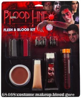 Create the most horrific and gruesome injury ever seen this Halloween! The flesh and blood makeup kit features blood capsules, scar putty, liquid latex, makeup sticks and more. Perfect addition to any zombie costume!